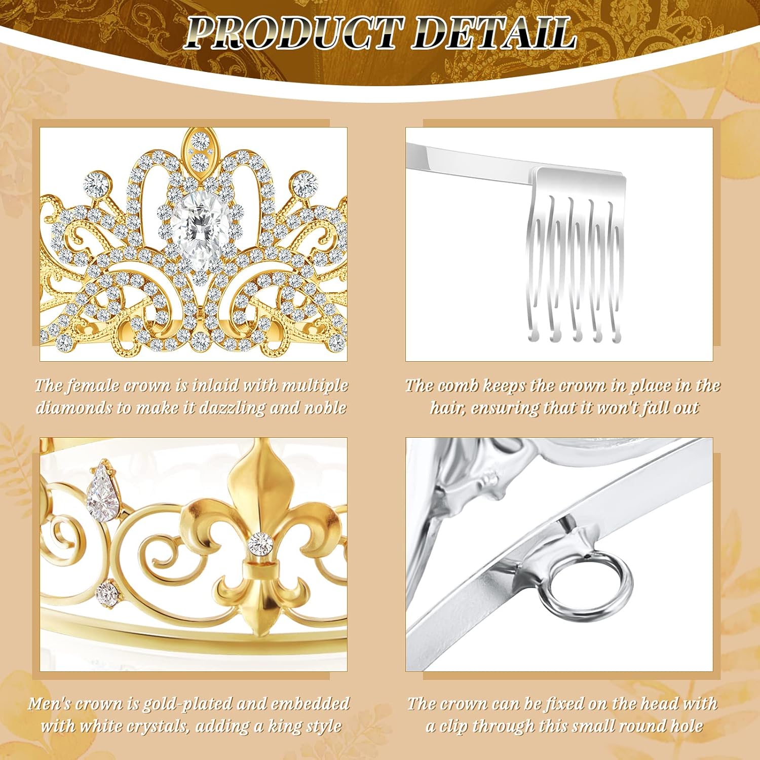 • Classic Baroque Design: immerse yourself in timeless sophistication with our king and queen crown set; The crowns' classic baroque design and dazzling crystalline adornments captivate onlookers instantly and elevate your style; They magnify your presence, ensuring you're the center of attention; Feel the charm of royals with these crowns that timeless elegance